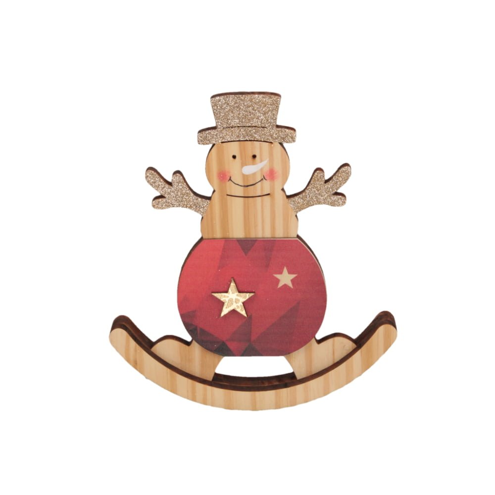 Gungande snögubbe i trä H 19,5 cm
