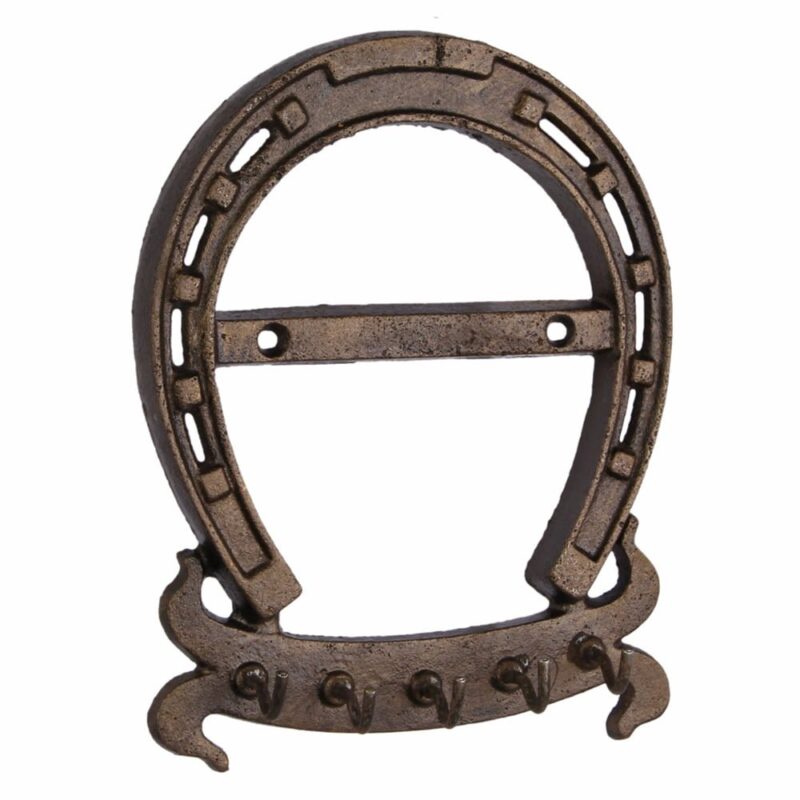 Hängare med fem krokar och dekor av hästsko. Mått 16×20,5 cm (lxh).