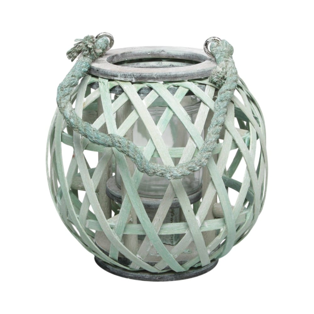 Ljuslykta grön med rephandtag 19 cm