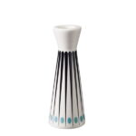 Hög ljusstake i vitt benporslin med ett härligt retroinspirerat mönster i dansk design. Höjd 15,2 cm, diameter 10 cm.