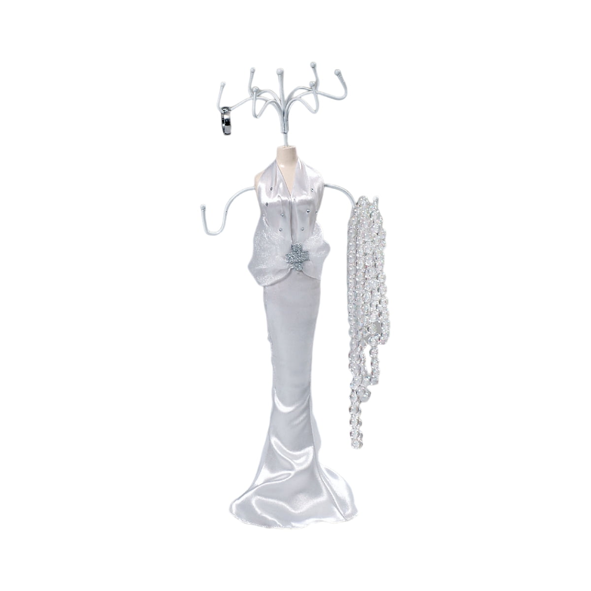 Smyckeshållare i form av en klänning. Få ordning på dina smycken med denna snygga och praktiska hållare i textil, polyresin och metall. Höjd 34 cm.
